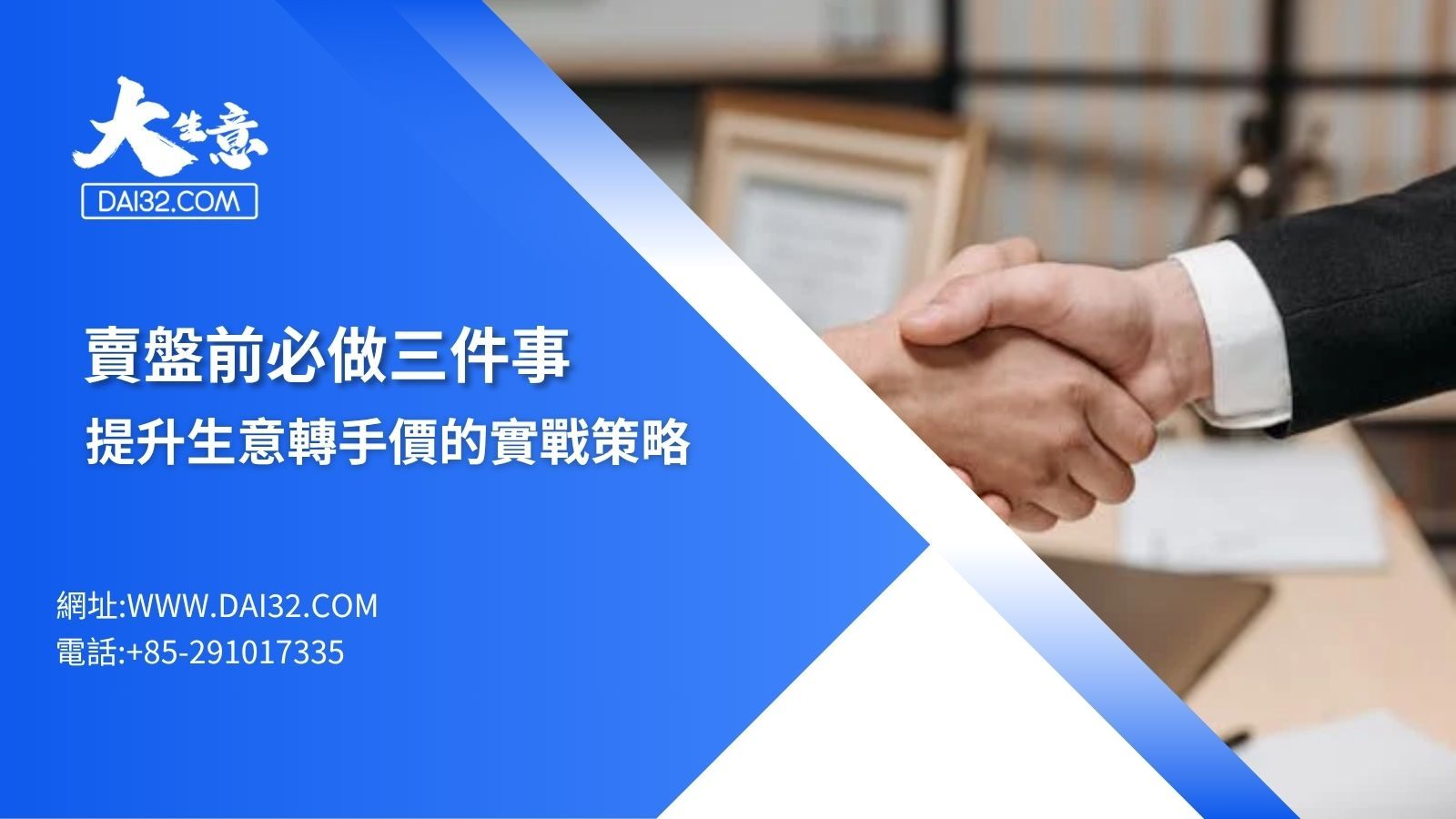 在香港商業轉讓市場中,同樣盈利水平的企業,生意轉手 價格可能相差數倍。關鍵在於賣家是否提前進行戰略部署。下面由我們dai32來揭示三項關鍵準備工作,助您在生意轉手時獲得理想溢價。
