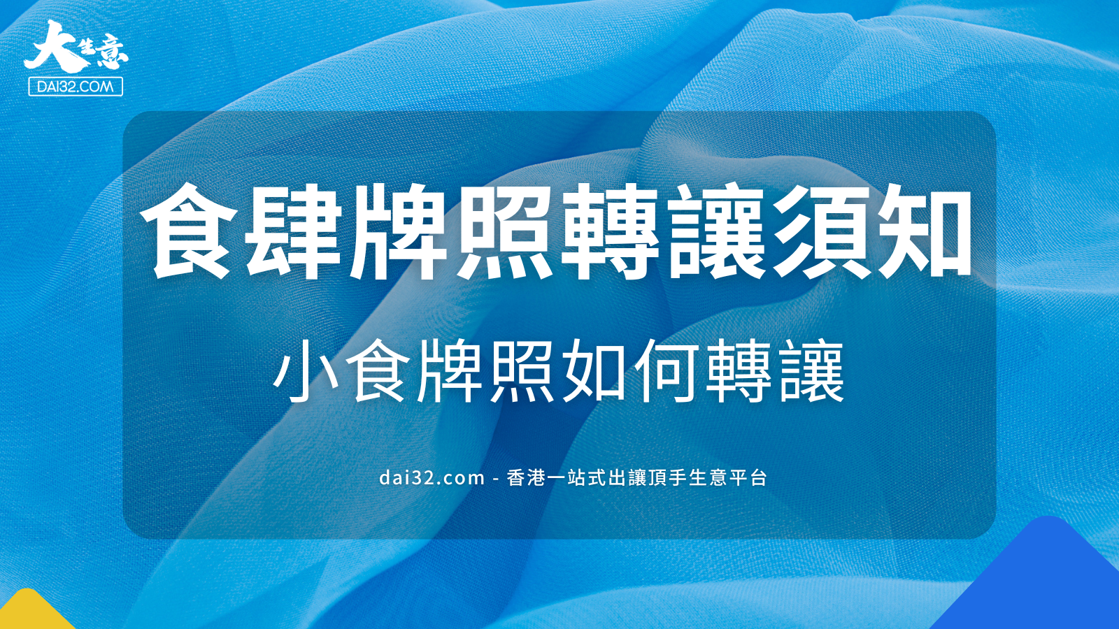 以上就係我今天分享“飲食牌照轉(zhuǎn)讓”嘅相關(guān)內(nèi)容,dai32.com提供一站式出讓頂手生意綜合平臺,不僅可以辦理中小企資助、公司賣盤、生意放盤,仲可以辦理食店頂讓、茶飲店頂讓、餐廳頂讓等等業(yè)務(wù),如果想知道更多透過dai32牌照轉(zhuǎn)讓嘅箇中橋妙,就即向我哋咨詢。
